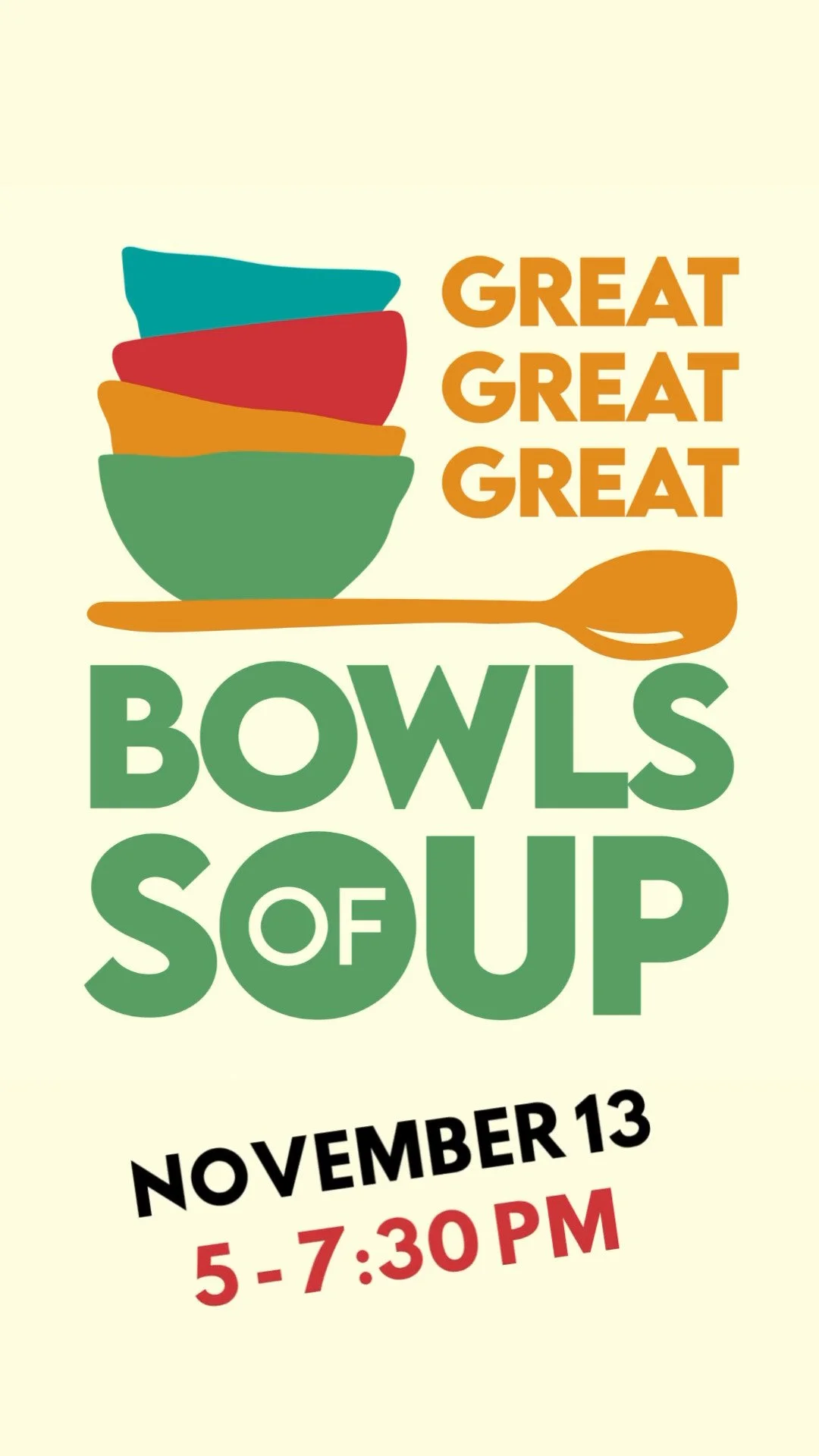 This year, GBOS is even bigger, located on all three floors for a Great-Great-GREAT Bowls of Soup experience! We canβt wait to see you on THURSDAY, NOVEMBER 13, 2025 from 5-7:30pm! (Doors will open at 4:30pm for Early Access ticketholders.) PURCHASE TICKETS